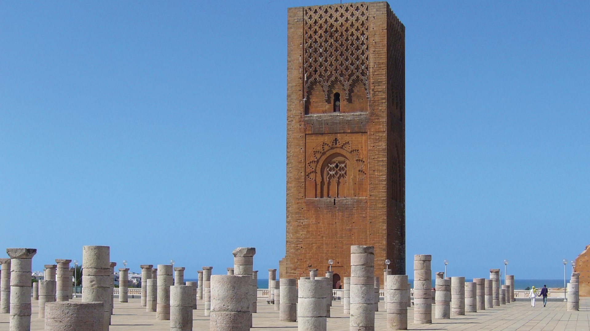 The Hassan Mosque was commissioned by Ya’qub al-Mansur (reg. 1184-1199) to serve as the principal congregational mosque of the Almohad empire. The mosque was never completed and remains in a partially constructed state to this day. An earthquake in 1755 further damaged the incomplete site, tearing down some of the central columns of the mosque. Most of these, however, were restored and help to portray the intended dimensions of the original project. The Hassan Tower is now one of the most prestigious historical monuments in Morocco. The eight-century old tower, adorned by charming gardens around it, was listed in 1995 as a world heritage by the UNESCO.