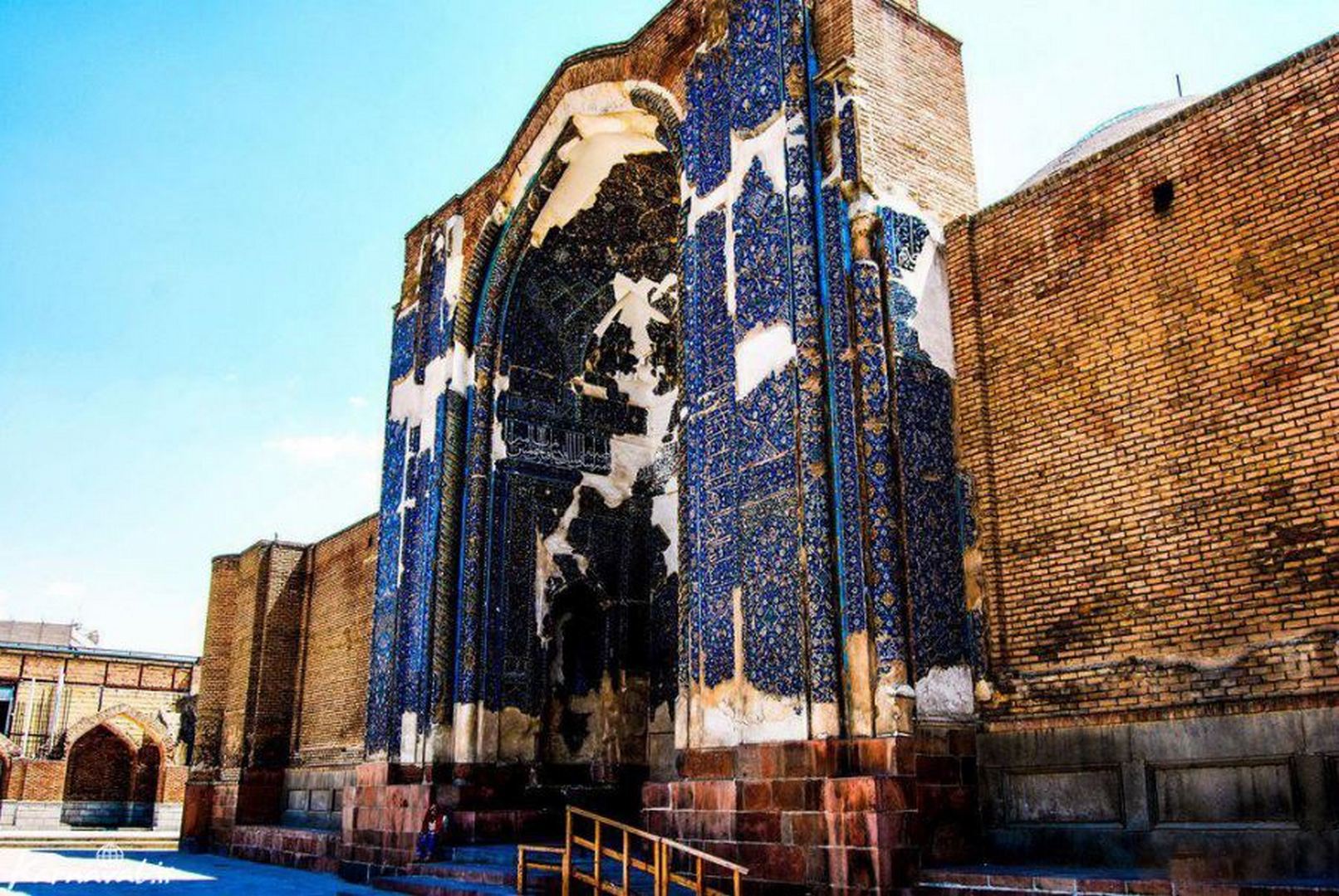 In 1779, an earthquake destroyed the original complex including school, public bath and library. The mosque was also badly destroyed. The roof of the mausoleum and the main dome chamber of the mosque burst and collapsed during the earthquake and just the entrance part is left. Then in 1973, it was reconstructed by Reza Memaran Benam (architect from Tabriz) under the supervision of the National Organization for Preservation of Ancient Monuments.