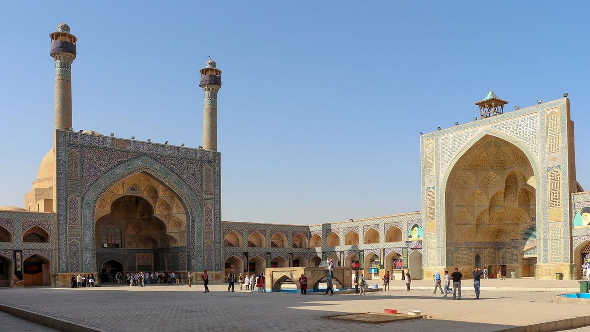 Construction under the Seljuqs included the addition of two brick domed chambers, for which the mosque is renowned. The south dome was built to house the mihrab in 1086-87 by Nizam al-Mulk, the famous vizier of Malik Shah, and was larger than any dome known at its time. The north dome was constructed a year later by Nizam al-Mulk’s rival Taj al-Mulk. The function of this domed chamber is uncertain. Although it was situated along the north-south axis, it was located outside the boundaries of the mosque. The dome was certainly built as a direct riposte to the earlier south dome, and successfully so, claiming its place as a masterpiece in Persian architecture for its structural clarity and geometric balance. Iwans were also added in stages under the Seljuqs, giving the mosque its current four-iwan form, a type which subsequently became prevalent in Iran and the rest of the Islamic world.During the Mongol period, one of the side arcades was converted into a prayer hall. A madrasa was added by the Muzaffarids, Timurids incorporated a great winter prayer hall and a portal. During the Safavid period, the iwans were covered with complicated muqarnas vaulting and faced with glazed tilework, and crowning minarets were added to the principal iwan.