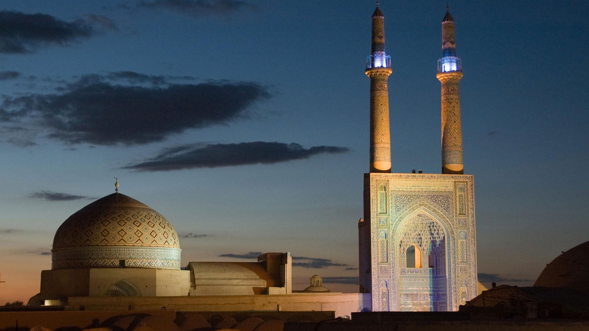 Jame Mosque is one of the unique historical mosques of Yazd with its tile works, tall minarets, plaster and mosaic faience works and the unique shape of its dome.