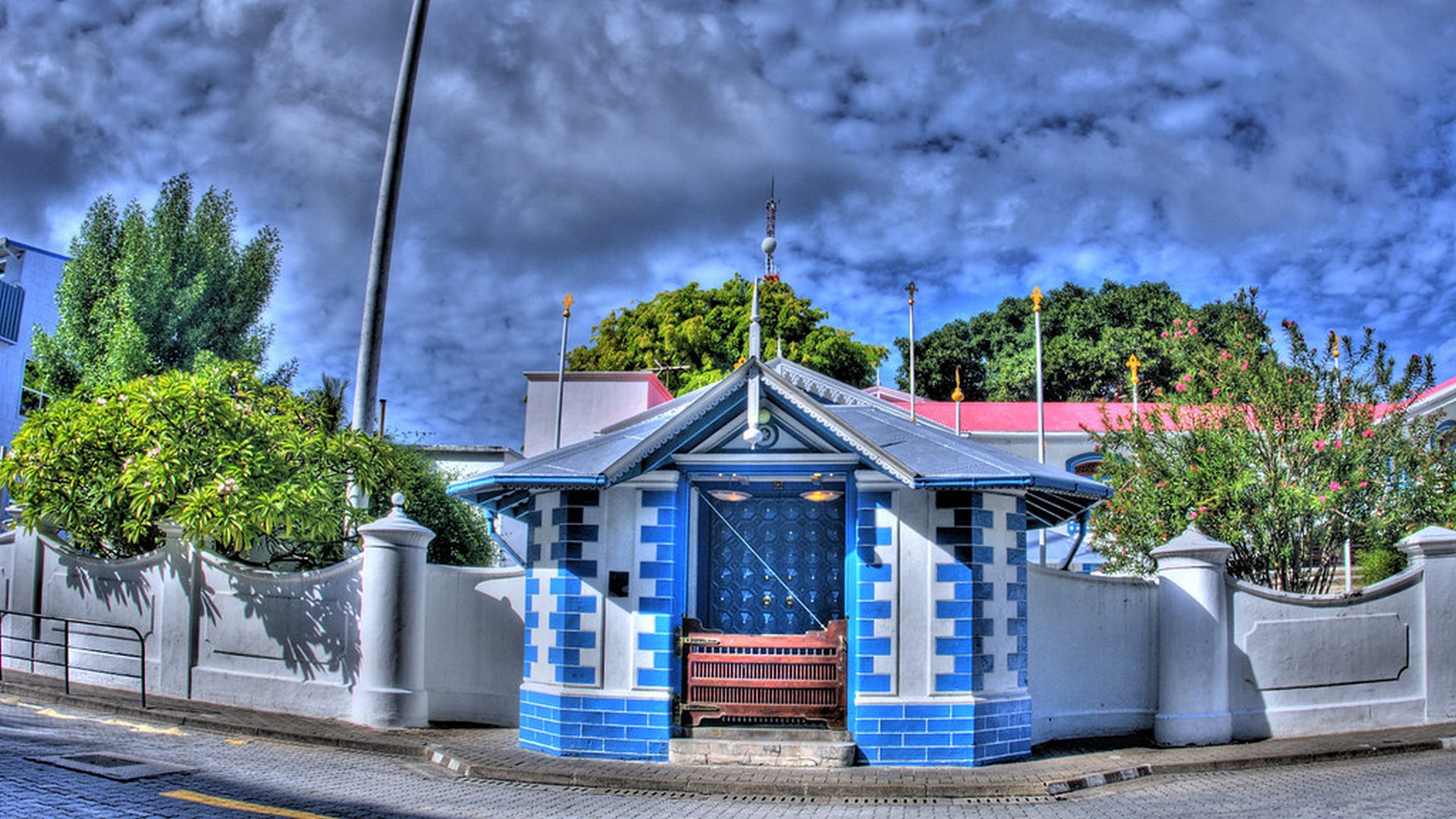 Muleeage is a palace building, founded across the road of Hukuru Miskiiy, which is the eldest architectural property in Maldives. The building is a property arouse in the early years of the 20th century, 1906 by Sultan Shamseddeen III. It was built for the Sultan to live in, however he was deposed before the completion of the construction; so the palace was used as government offices for about 40 years. As the republic was announced in 1953, the president moved in. In 1986, the house was renamed the ‘Presidential Palace’ and was upgraded to hold official functions and to accommodate visiting Heads of States and other foreign dignitaries. This is a significant building with blue and white dominating colors and colorful gates.Opposite the Hukuru Miskiiy is the Medhu Ziyaarath, the shrine of Abu al Barakaath Yusuf al Barbari, a North African, believed to be responsible for converting the Maldives to Islam way back in 1153 AC.