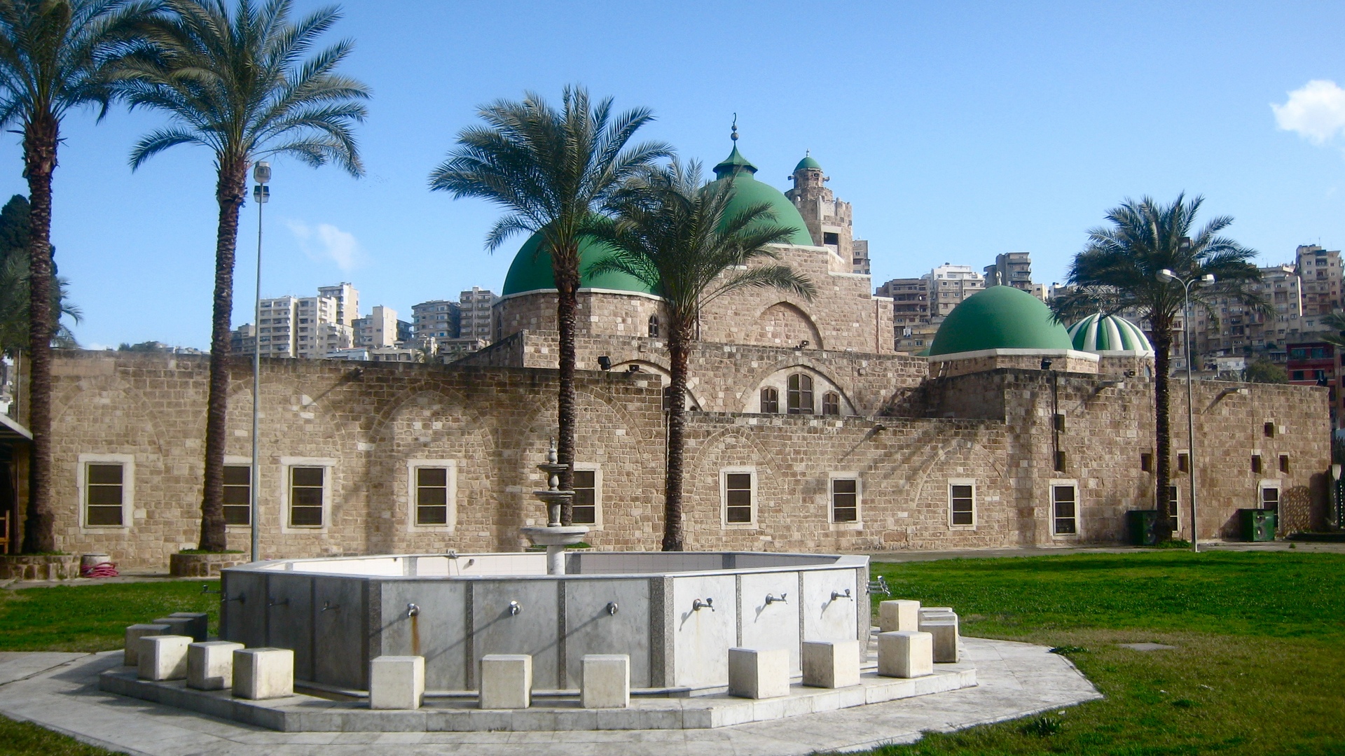 This mosque stands alone in the middle of a garden and it can be viewed from all sides. It is characterized by four domes of different size and shapes which reflect the unusual structure of the interior which has two consecutive prayer halls.