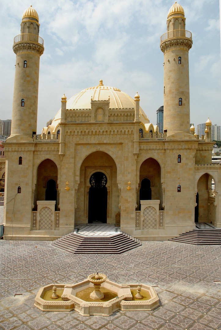 The mosque is constructed over the tomb of the great Sufi scientist of the 14th century Seid Abdulla Bakuyi. The tomb was a place of pilgrimage and was named after its discovery as Taza Pir (the New Pir). The present mosque is built by the order of Nabat Khanum Ashurbeyli who is herself burried in the mosque.
